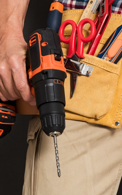 - Utiliser une ceinture ou un tablier robuste, et accrocher les outils pointe vers le bas sur le côté, et non dans le dos.